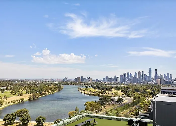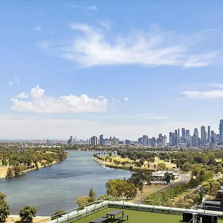 Appartement Grand Prix & Water View - Free Parking, Pool & Gym à Ville de Ville de Melbourne spacieux est situé à 3 km du Musée national du sport et à moins de 25 minutes à pied de la Salle de spectacles Chapel Off Chapel. Le domicile de 63 m² dispose d'une piscine privée et d'une terrasse pour le confort des hôtes.